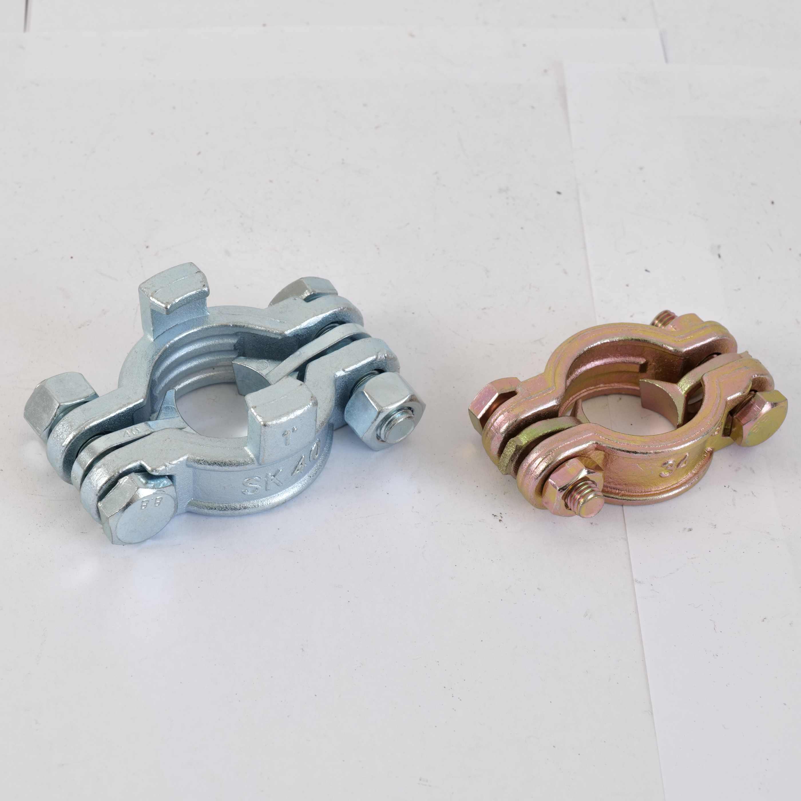 The Materiał zacisku z podwójną śrubą to węgiel dostępna jest również stal i mosiądz i stal nierdzewna, jest to technologia odlew precyzyjny. Powierzchnia jest cynkowana w kolorze srebrnym lub żółtym.
